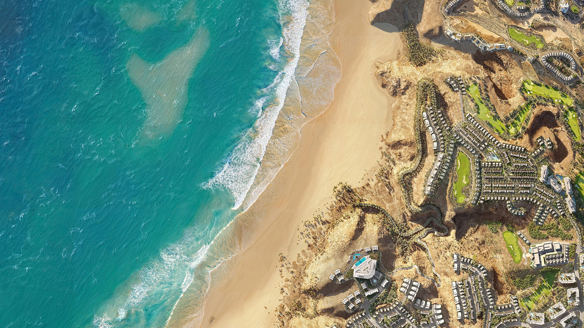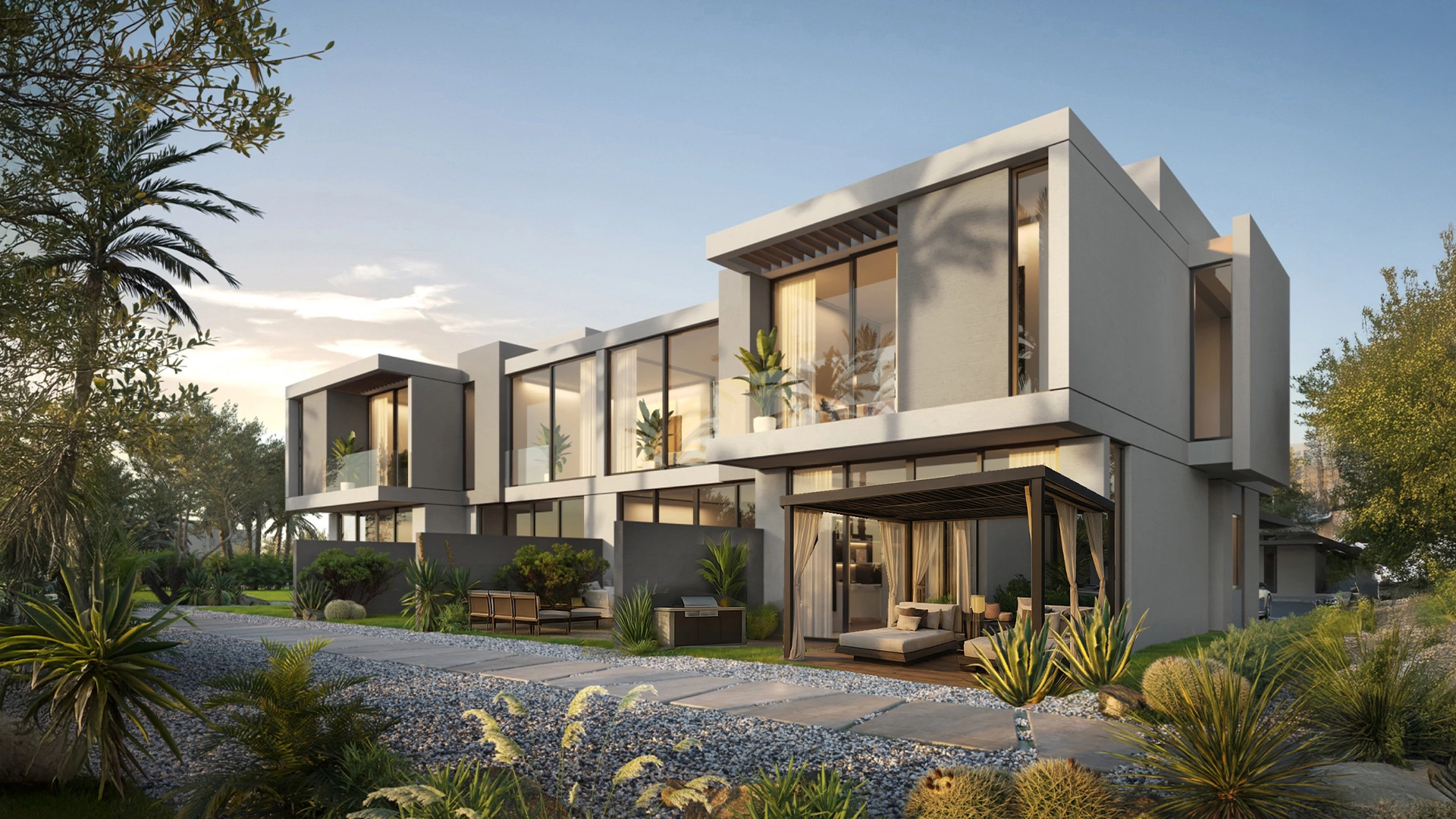 Amour Sans Detour Villas are located in a prestigious location. Just a 50-minute drive from Muscat International Airport, you are playing golf with friends at the 18-hole Trump International Golf Club course. Residents can enjoy luxury amenities such as wellness and fitness centers, swimming pools, hiking and biking trails. The villas are ideal for living in harmony with nature: thanks to the large windows, the house is always filled with natural light, and on the spacious green terraces it is pleasant to have breakfast or do yoga under the open sky.